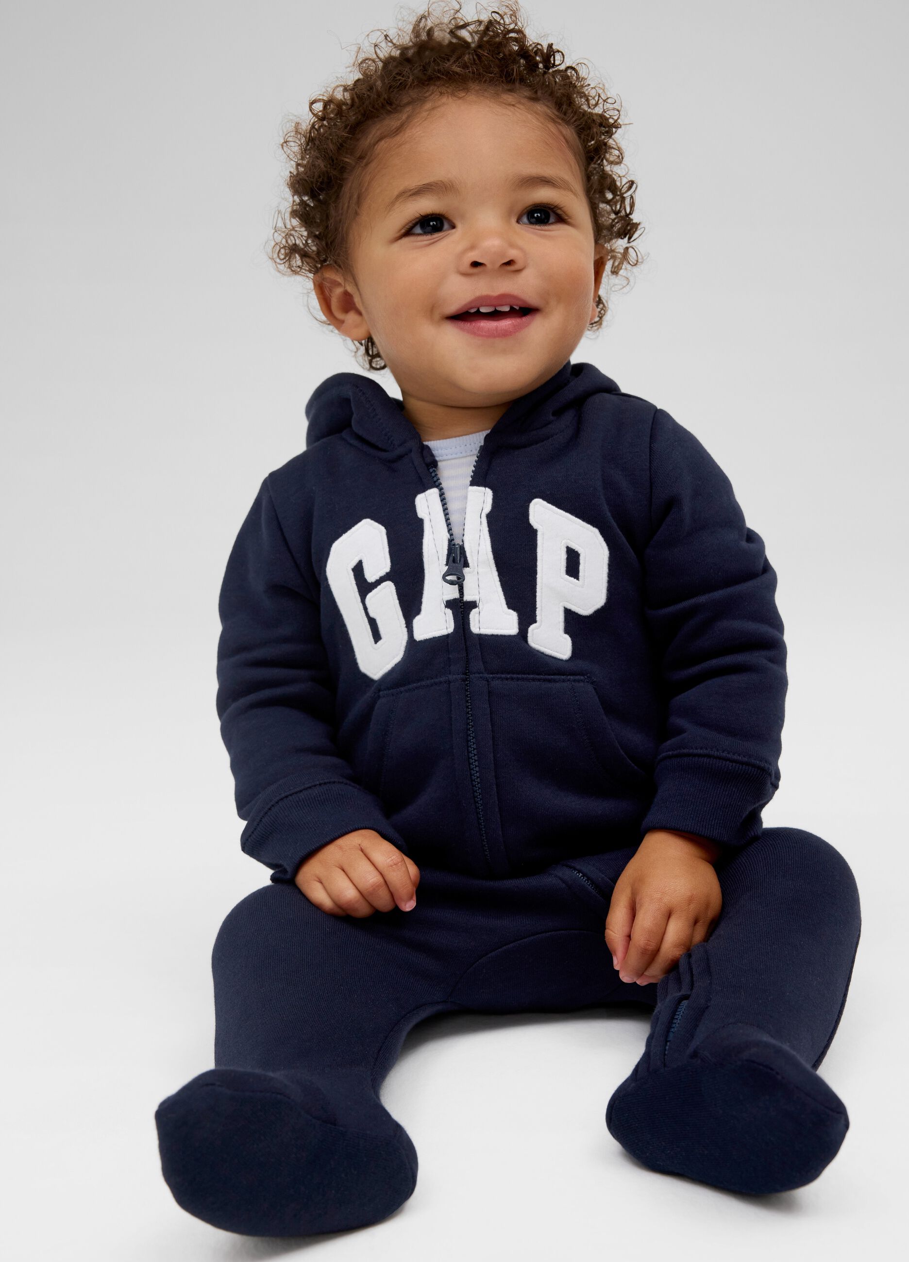 Full-zip plush onesie with feet in cotton blend. Hood with ears. Logo embroidery on the front. Two pouch pockets. Ribbed elasticated cuffs.